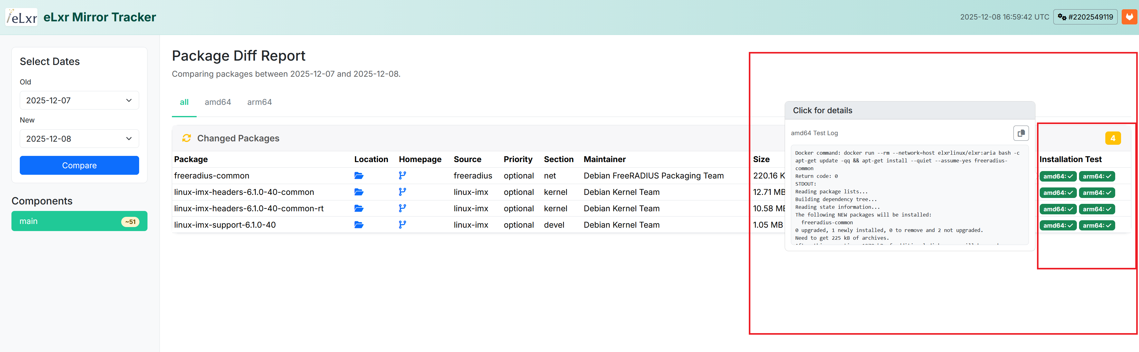 We’ve integrated installation testing directly into the Mirror Tracker workflow, enabling the testing team to validate package changes automatically. The system now: